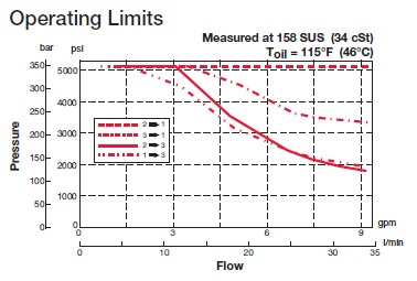 N/A 5.5 cu in/min. at 3000 psi and 135 SUS (90 cc/min at 207 bar and 28 cSt) |
