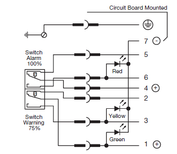 N/A Visual (Red Pin) & Electrical Switch (75% & 100% Activation). 3 LED's (Grn=Power, Yel=75%, Red=100%) |